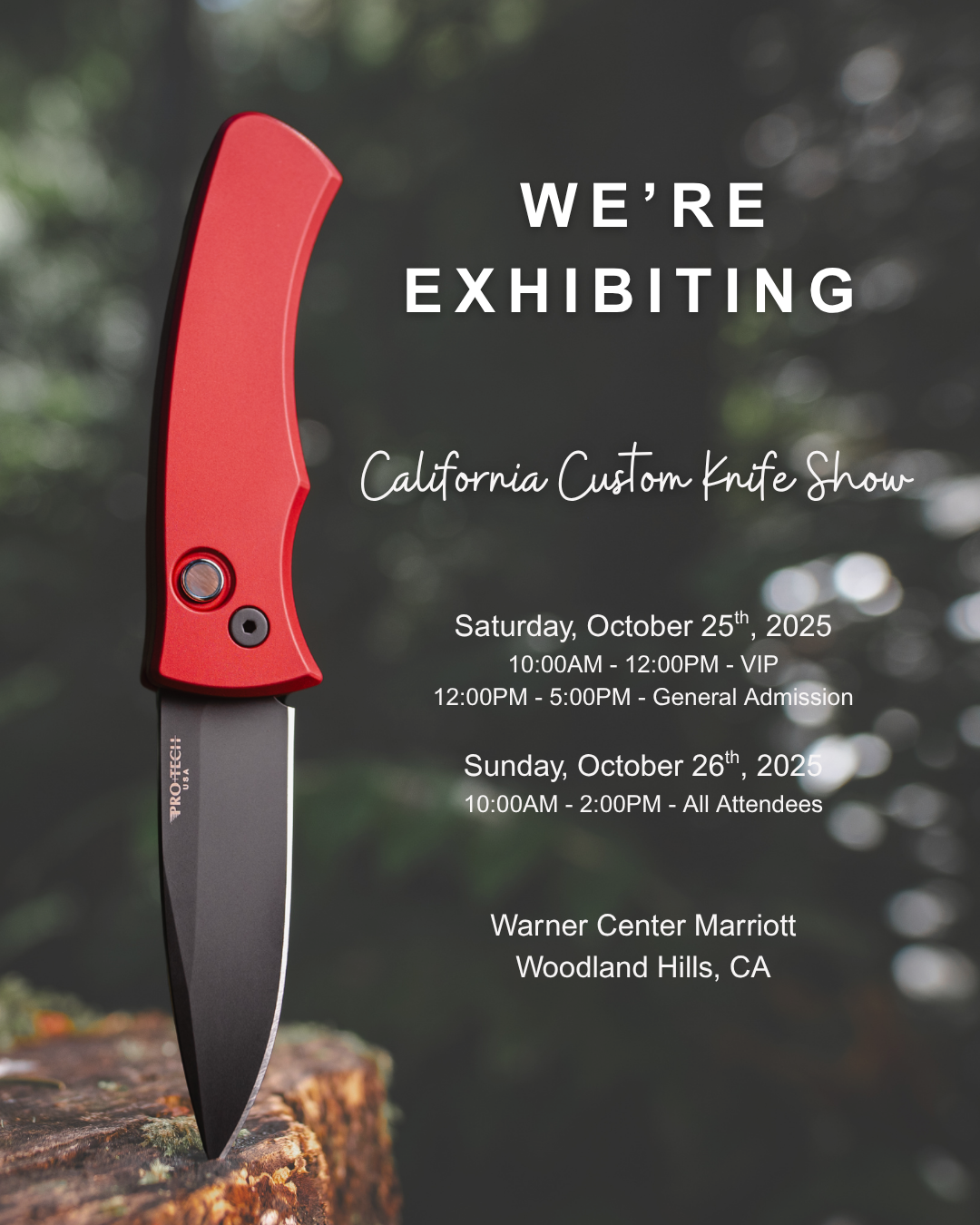 We will be attending CCKS Fall | Woodland Hills, CA, we are excited to showcase a wide range of knives, including limited edition customs, new projects, and various other impressive products from our 2025 lineup. From anodized titanium customs to Magnacut steel, our offerings at the Pro-Tech booth are extensive. Stay tuned to our Instagram and Facebook for more sneak peeks and announcements.